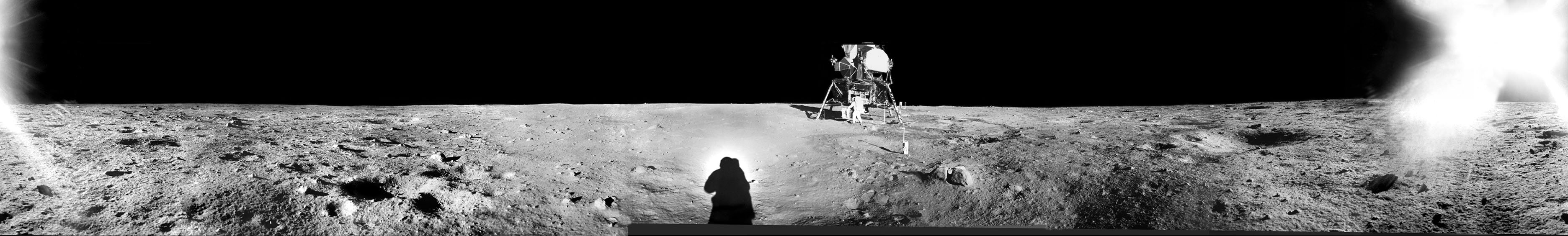 Guarda questa immagine dove non c'è l'ampia ombra nera del Lem, e come la tuta di Aldrin sia ben più luminosa del terreno all'orizzonte, esattamente come dovrebbe essere secondo i tuoi calcoli. (dobbiamo prendere come riferimento il terreno all'orizzonte perché abbiamo visto che quello vicino ha subito modifiche sulla riflettanza dovute agli scarichi del reattore)