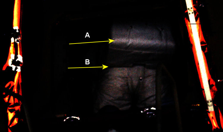 Ma la fotografia ci dice una cosa diversa.la luce del backscatter arriva meno dal basso, in quanto sappiamo che sotto al portellone c'è l'ampia ombra del lem, e questo lo possiamo capire guardando lo zaino nella foto: