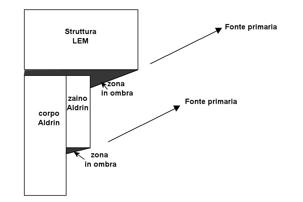 Ma se io guardo la ZONA IN OMBRA sotto la zaino qualcosa non torna, se io guardo il tuo schemino tutto combacia con la fonte primaria in alto, ma se guardo la foto MANCA L'OMBRA DELLO ZAINO SUL CULO DI ALDRIN, per essere più chiaro, se io guardo il triangolino della zona in ombra sotto lo zaino, l'ombra del cateto maggiore (sotto lo zaino) è ok, ma l'ombra del cateto minore (sul culo) MANCA COMPLETAMENTE.