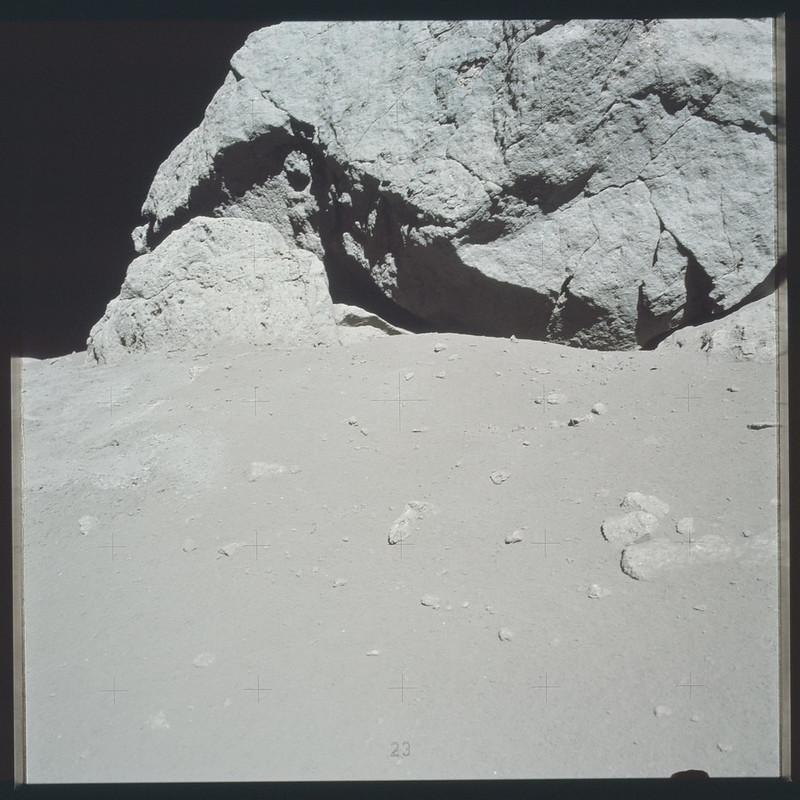 luminosità omogenea del suolo col sole alto della terza EVA di Apollo 17 e l'altra col forte