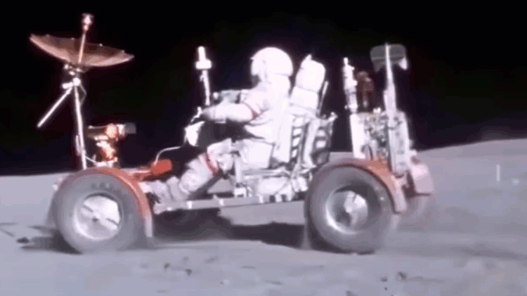 E guarda caso, in quel video, si vede l'astronauta salire sul rover, scomparire a destra e pochi secondi dopo "sfrecciare" verso sinistra (gif postata CENTO VOLTE) ma NESSUNO dei tuoi sodali ha mai postato il video completo da dove è stata ricavata la gif. e sai perchè? L'ho spiegato sopra.. non l'hanno MAI POSTATO perchè nel video completo di vede che alla fine della corsa un astronauta SPOSTA la telecamera fissa verso il rover FERMO.