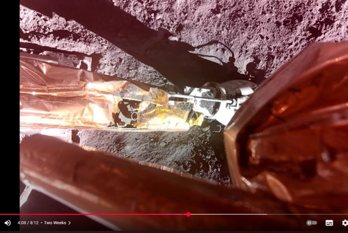 la regolite ci arriva in un secondo momento e non credo che quella sia la zampa del lander, ma uno strumento scientifico, vedi in particolare il secondo video