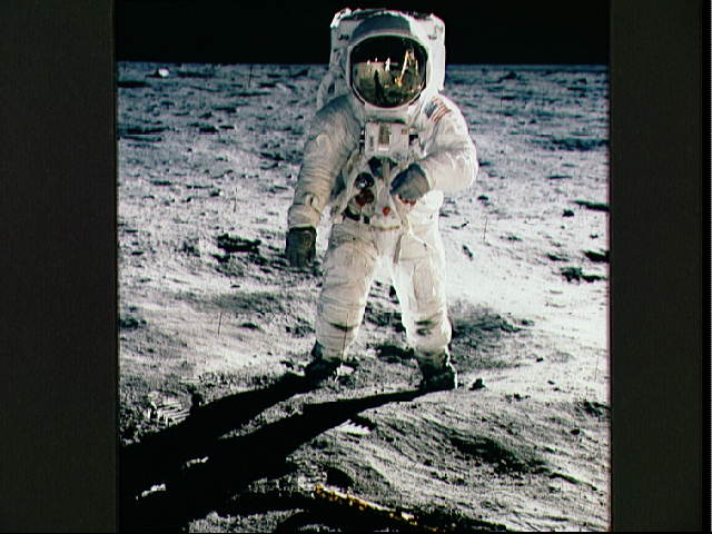 Questa è stata condivisa nel 2003, un anno prima delle scansioni. E' un ottima elaborazione proveniente dalle elaborazioni di Michael Light, ma che provenga dalle copie per contatto lo si capisce dal cielo sopra lo zaino, quello nell'originale non c'è, lo zaino arriva a filo per cui è stato aggiunto in fase di elaborazione. Comunque questa è la dimostrazione che sapendo lavorare con Photoshop è stato possibile ottenere da copie per contatto delle scansioni quasi comparabili con quelle provenienti dall'originale.