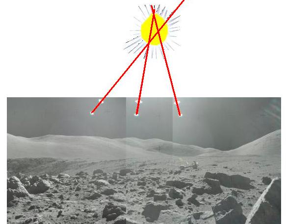 Metti l'ID della foto, o almeno la missione (Apollo 15,16, 17) così controlliamo.Le ombre non convergono in punto comune, come mai?