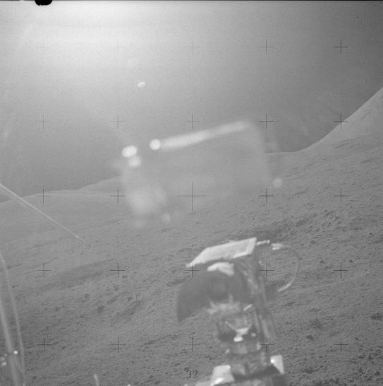 Una maschera ??<img src="/Quello nella foto AS14-66-9324 era un carretto che si erano portati dietro, alloggiato esternamente al LEM. Ovviamente non era motorizzato, lo trainavano a mano per portare a spasso le attrezzature." >