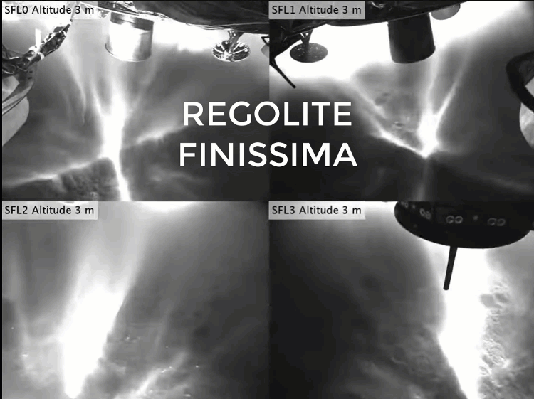 Tutte le prove dimostrano che è corretto questo comportamento che ho descritto, anche le prove di Blueghost dove in alto si è sollevata solo la regolite più sottile, e solo nel momento del contatto meccanico dei piatto col suolo si vede spostarsi regolite più compatta (e anche qualche sasso in altre angolature).