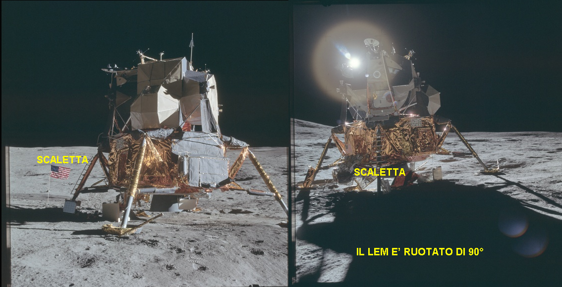 Infatti in una si vede l'antenna, nell'altra no perché è coperta dal Lem (però dietro la bandiera della prima immagine vedi l'ombra dell'antenna).