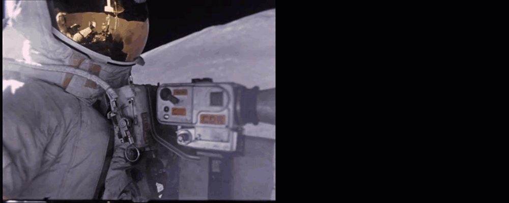 ma una simile cinepresa con quell'obiettivo non avrebbe mai potuto inquadrare un pupazzo di qualche centimetro e farlo vedere così come lo vediamo sotto. Davvero illudersi che questo sia un pupazzo è fuori dal bene e dal male, tra l'altro col riflesso nel suo casco dell'altro astronauta che muove il braccio, proprio per girare la cinepresa.