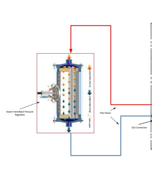 E' un dispositivo di metallo dove all'interno circola acqua con un ingresso (acqua calda) e un uscita (acqua fredda) in pratica un tubo con alle pareti una membrana porosa con micro fori che mettono in comunicazione l'acqua con l'esterno, dove c'è il vuoto.