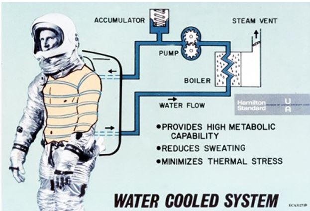 "Per le EVA più lunghe l'acqua destinata al raffreddamento era di circa 5,5 litri, e il consumo orario se l'attività era intensa arrivava a 0,65 kg/h"
