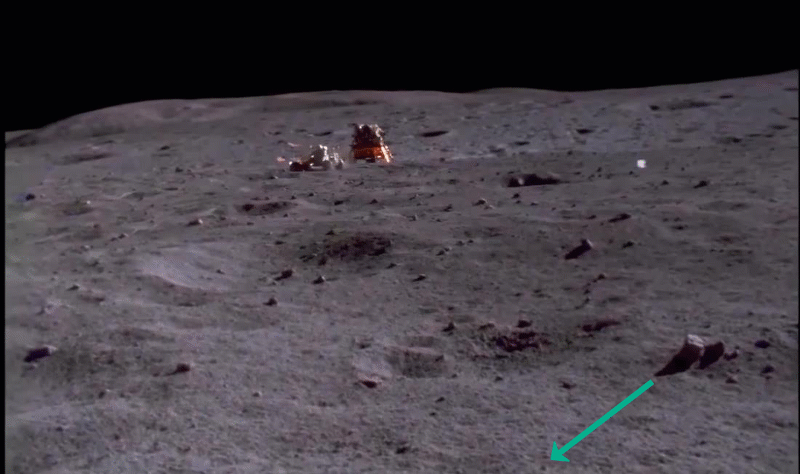 Guardiamolo molto attentamente (dimenticavo su un bello schermo serio, VIA telefonini e tablet!!), secondo dopo secondo e cerchiamo di capire la "profondità" e "l'estensione" della scena, i particolari che si vedono quando il rover è in primo piano e tutto quello che accade man mano che si allontana e va a girare "là in fondo" vicino al LEM e poi torna indietro...