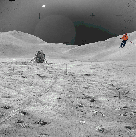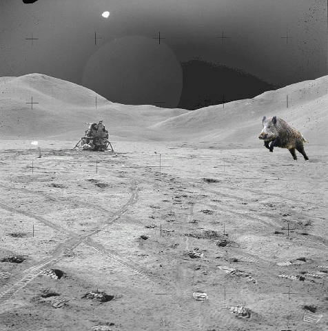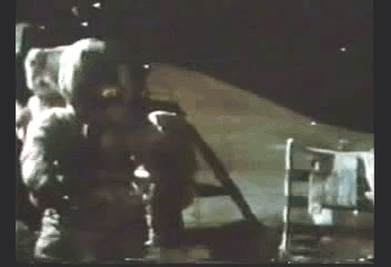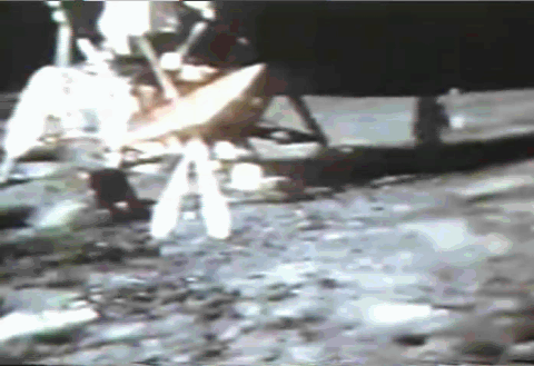 Per smentire la leggenda metropolitana che il rover fosse solo un bluff, vi faccio vedere questa gif dove un astronauta sale sul rover, anzi si arrampica per prendere qualcosa e nel farlo, lo scuote così tanto che l'antenna perde per un attimo il puntamento e la trasmissione diventa disturbata.