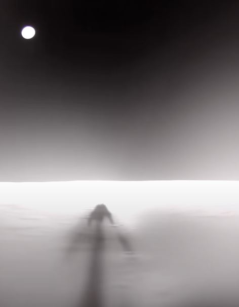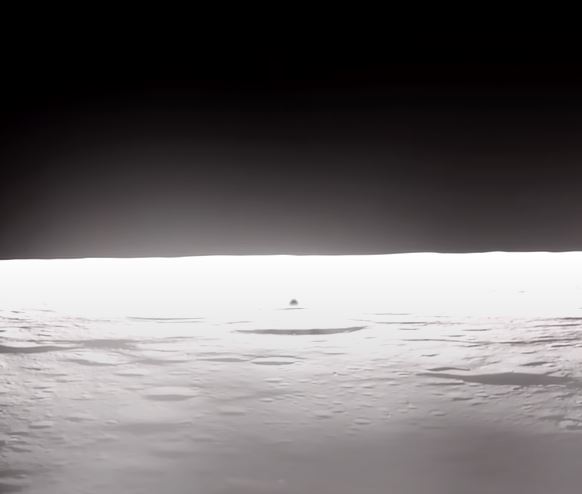 Il lander scendendo sposta sempre più regolite e questa diventando abbondante non è più trasparente e si allontana verso l'orizzonte dove si trova l'ombra del Lem e riesce addirittura a coprirla.