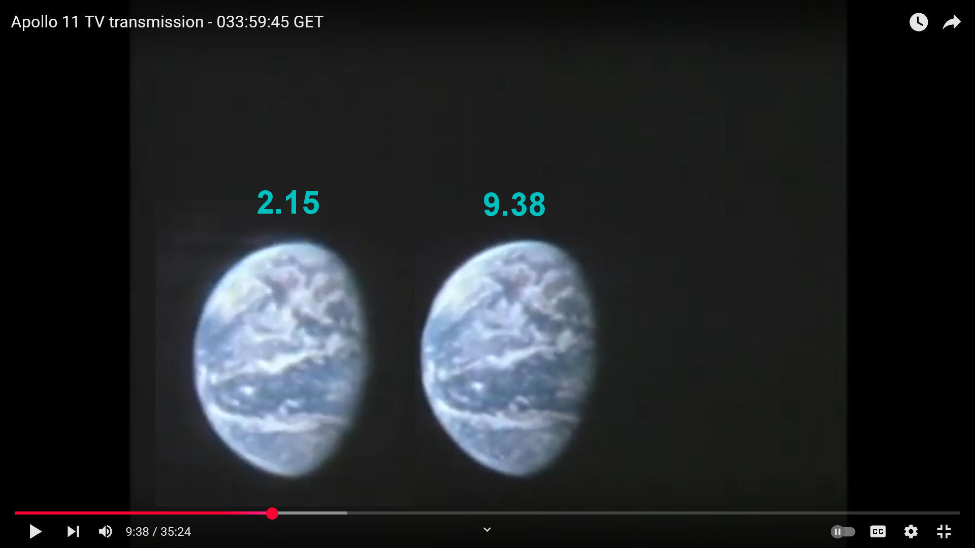 1) Fra la prima immagine valida della terra (2.15) e l’ultima prima del taglio (9.38) non c’è nessuna differenza sostanziale rispetto alle nuvole. L’unica differenza è una deformazione nella rotondità della terra, dovuta probabilmente ad una diversa focale usata con lo zoom nei due momenti diversi. Questo conferma quindi – come dici tu - che l’ipotesi Sibrel (terra che scorre sotto) non sia valida, mentre l’ipotesi Percy (transparency appoggiata al vetro) verrebbe confermata.