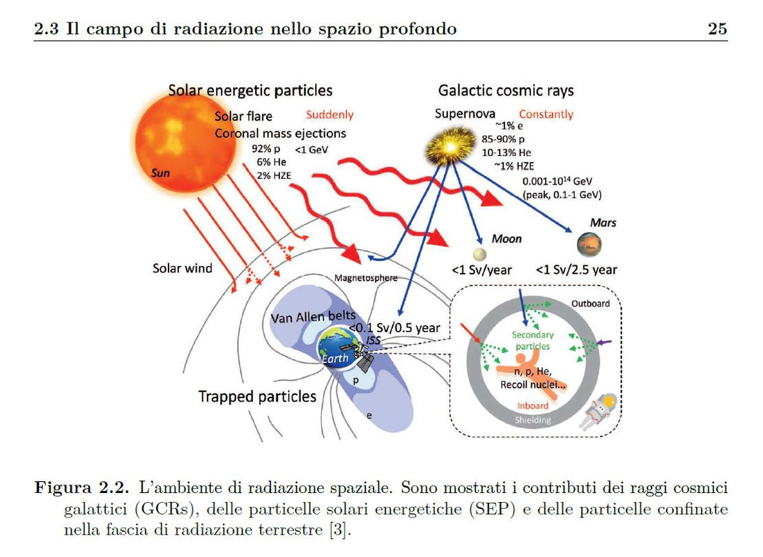 Se notate c'è anche la cosiddetta spallazione, tanto sponsorizzata da Roberto, che viene indicata come "secondary particles", ossia l'effetto che i raggi cosmici creano quando impattano su di uno scafo metallico di un'astronave e si parcellizzano in uno sciame di particelle che colpisce gli astronauti.