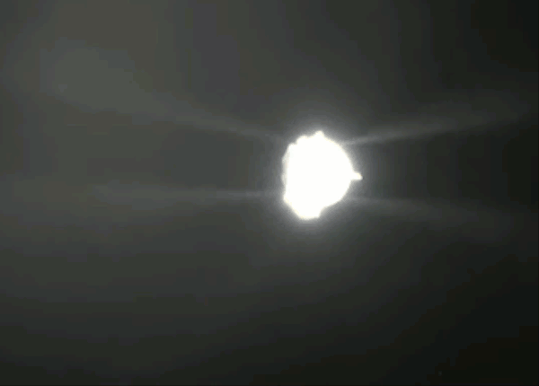 Qui vediamo la navicella Crew-3 investita in pieno dal sole e vediamo uscire dai suoi reattori direzionali degli impulsi di gas, resi anche loro visibili, e che si espandono come fossero raggi di luce.