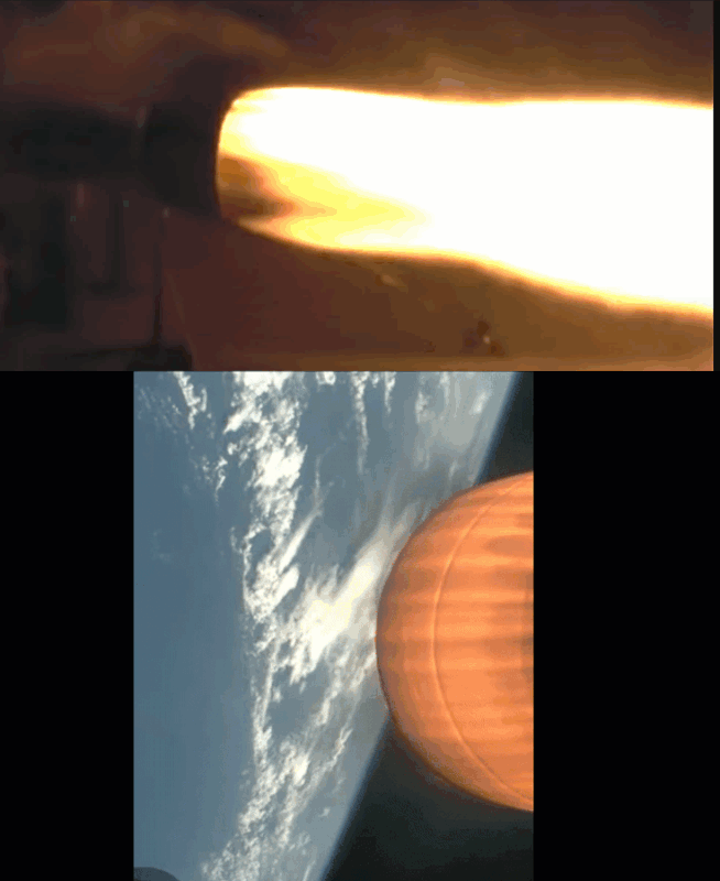 Nel vuoto quella forza si annulla e la differenza tra le due immagini è proprio questa, in una l'aria stringe il plume con quasi 100.000 kg, nella seconda immagine i gas incandescenti si espandono liberamente e si aprono quasi a 90°.