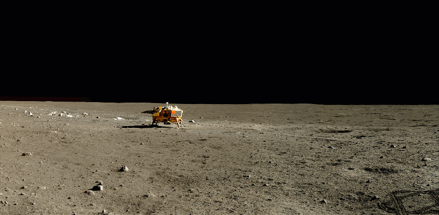 oppure questa bellissima immagine di chang'e 3 visto con un'inquadratura larga sul lander fatto da rover: