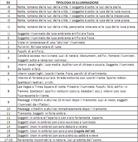 A cosa corrisponda un EV 9 del Maurer neanche lo scrivo perché non vorrei che qualcuno, leggendo "riflettori", poi si faccesse strane idee su cosa illuminasse il terreno