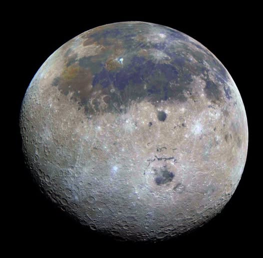 Luna dal lato opposto visto dagli astronauti Artemis II, a colori elaborati dall’astrofotografo Damien Peach!! Quei colori sono saturati di più per renderli più visibili a occhio nudo ma dalle descrizioni degli astronauti li vedono anche loro!