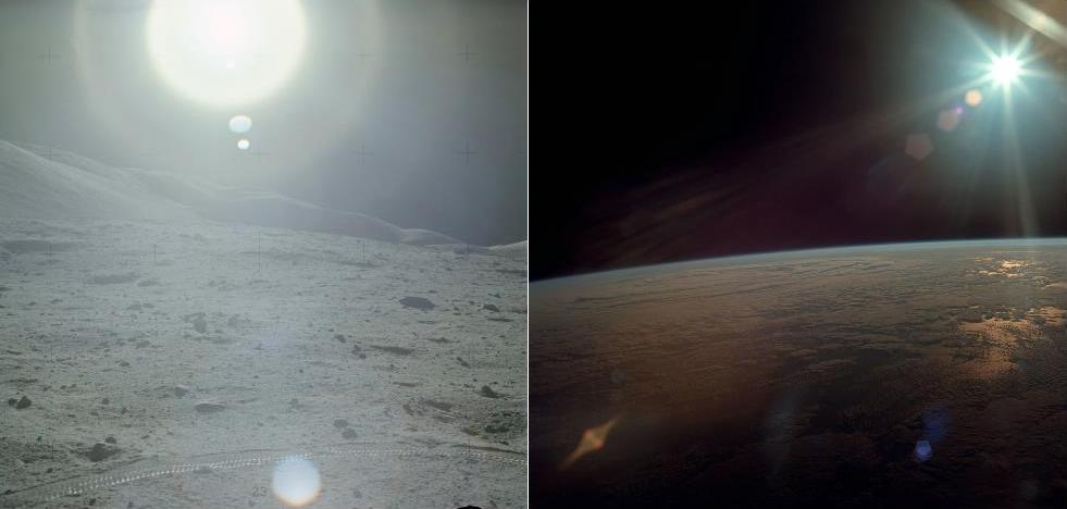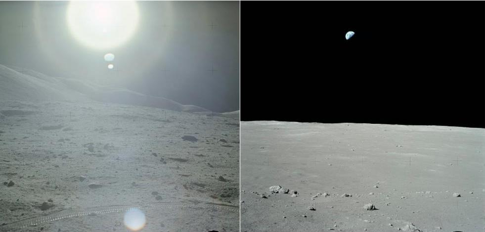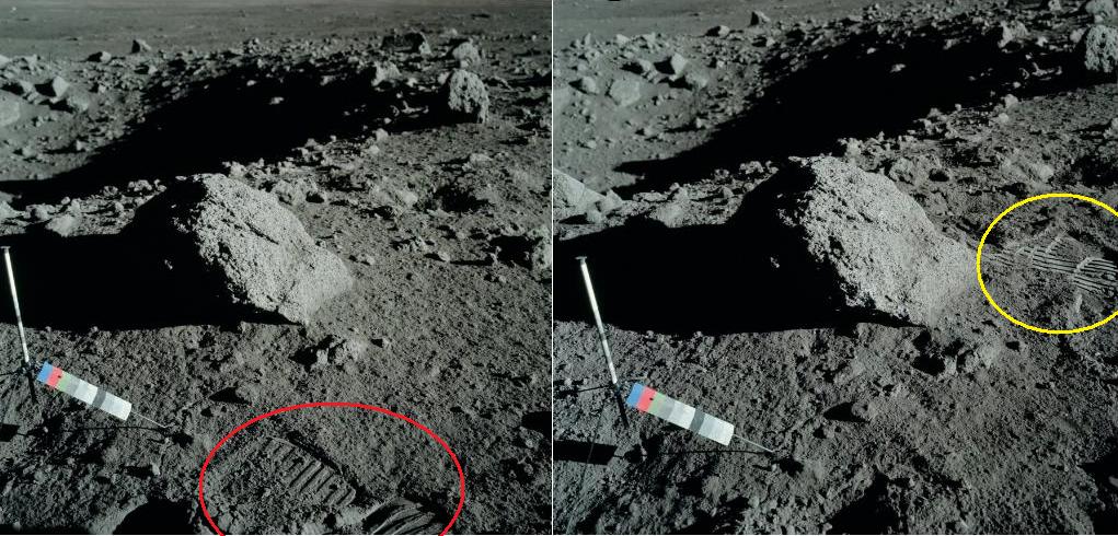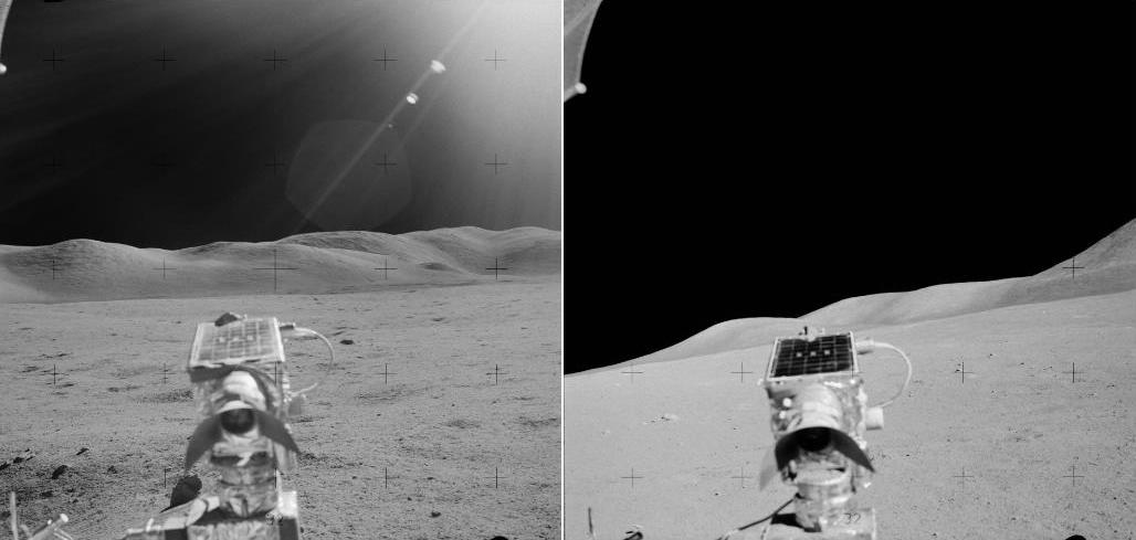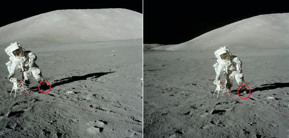 Nella foto AS17-134-20439 l'astronauta ha lo stivale sinistro in ombra e nella foto AS17-134-20440 lo stesso stivale è illuminato; tuttavia: