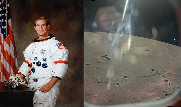 nella foto AS15-88-12004 (a destra) possiamo vedere qualcuno scattare una foto della Luna.