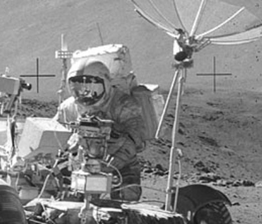Nella foto AS17-138-21078 il pannello solare della fotocamera è ben illuminato.