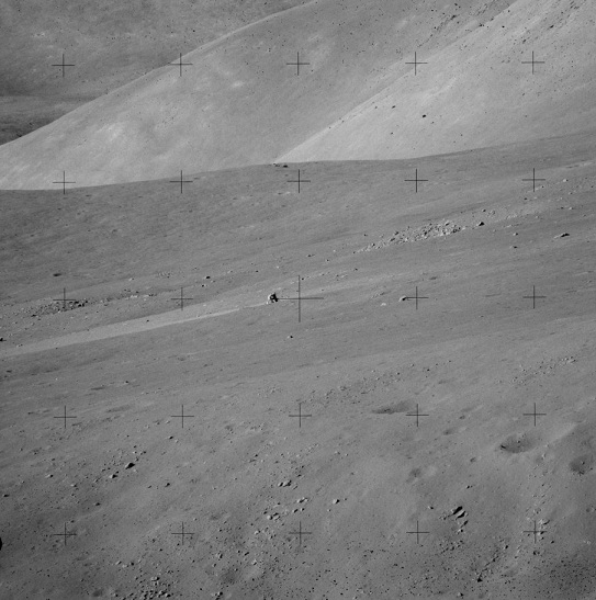 Nella foto AS15-90-12192, vediamo le tracce del rover.