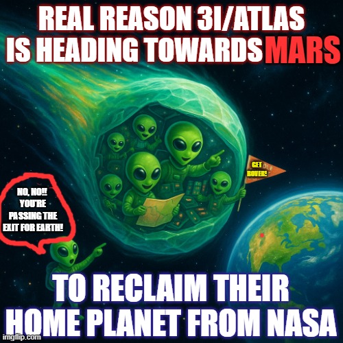 I detrattori degli UFO tendono sempre a "dimenticare" che è assurdo pensare di essere soli nell'Universo e che la Terra, nel nostro "piccolo" Sistema Solare, è l'unico pianeta abitato che emana segnali intelligenti (???) nello Spazio.Dunque non comprendo tutto questo clamore, stupore e segretezza nell ipotizzare (sottolineo ipotizzare) che 3I ATLAS potrebbe essere un artefatto alieno.