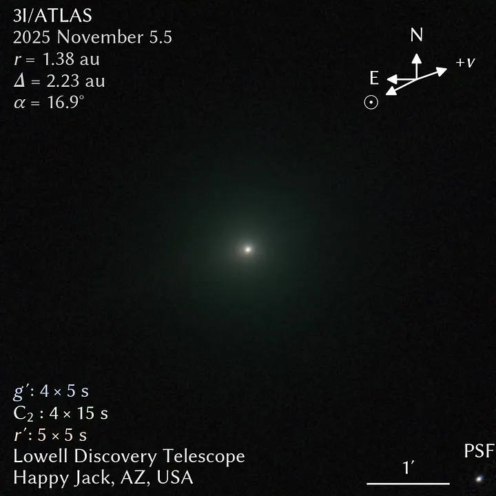 Allego come comparazione due immagini, una di 3i/ATLAS e una della cometa Lemmon fatte dallo stesso osservatorio