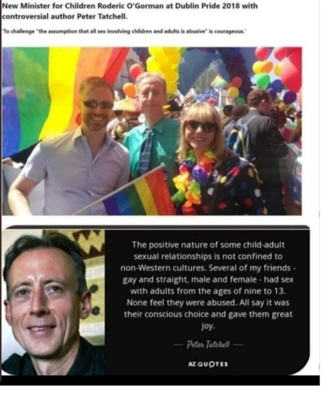 Il provvedimento di cui si parla nel video e' stato introdotto da Roderic O’Gorman,allora ministro dell'educazione. Mr O'Gorman e' stato ampiamente criticato per la sua amicizia con Peter Tatchell, attivista lgbt+++ che in passato recensi' positivamente un libro di un pedo che approvava sesso coi bambini.