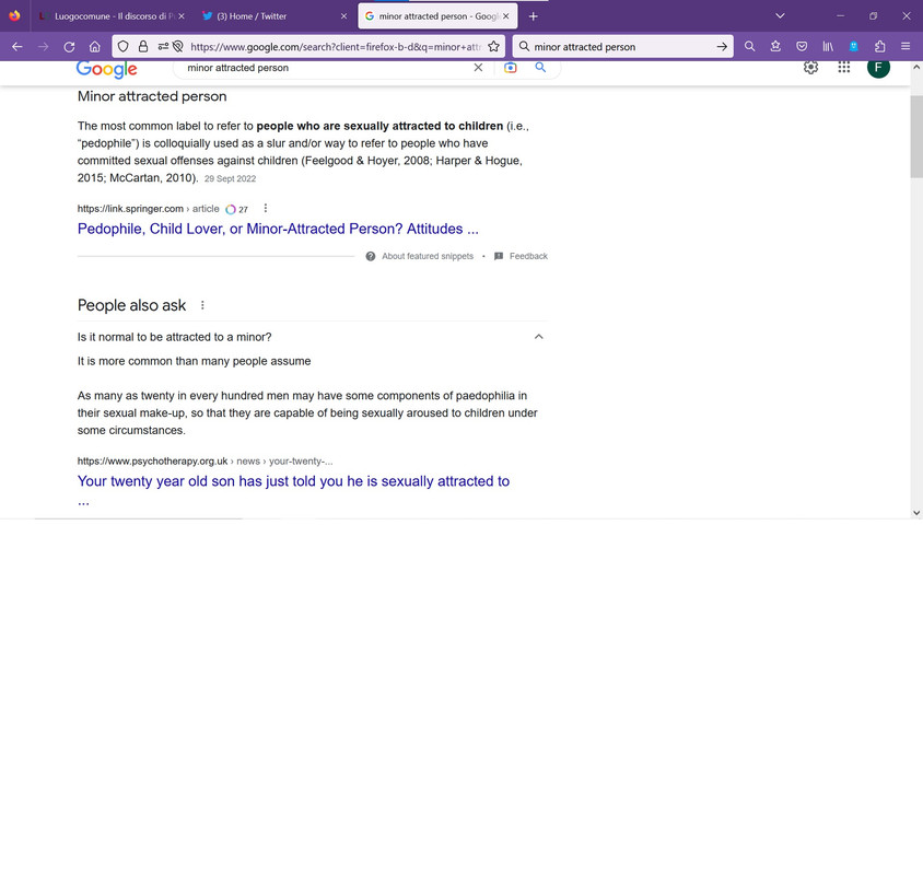 #269 pencri93 Infatti non e' in corso nessuna battaglia per i diritti degli omosessuali e trans, non gliene frega un cazzo. Vogliono sessualizzare i Bambini per sdoganare la pedofilia. Poi vorrei sapere che diritti sono negati a trans e omosessuali in occidente... Capirei fossimo in medioriente! Ho lavorato in tempi non sospetti con trans, in ufficio e persino impiegate come assistenti di volo. Amiche lesbiche e amici gay, serate a spassarcela per locali. Quindi non venire a dirmi che non li conosco o sono transfobica. Non si vuole proteggere nessuna minoranza, ripeto nessuna. E' un'agenda di distruzione dell'umanita' che passa attraverso l'agenda Verde, i migranti e gli LGBTQ+, la stessa agenda