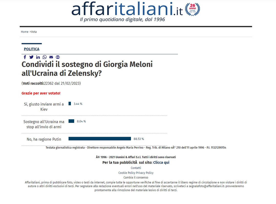 Noto una certa tendenza dal covid in avanti, ma forse è iniziata da molto tempo prima, in cui i pennivendoli raccontano una storia e milioni di italiani la pensano completamente all'opposto.Forse dopo il covid è diventata più evidente per via della continua contrapposizione o schieramento fondamentalista dogmatico, imposto da questi servi di regime. La cosa incredibile è come sia possibile per questi 4 mentecatti tenerci a bada e divisi, ma forse in questo li aiutiamo anche noi.