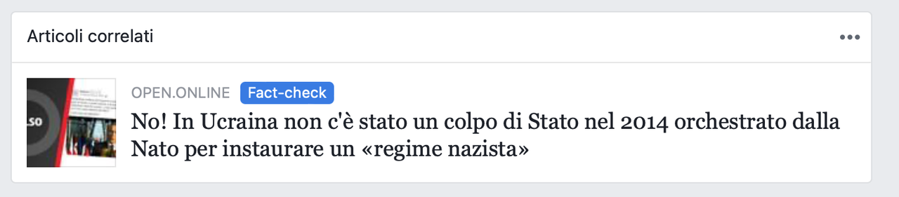 Si si , è arrivato anche a me lo stesso messaggio da parte di open e la sua combriccola mafiosa. Fact-checker INDIPENDENTI. Già il fatto che siano indipendenti significa che non hanno alcun mandato per occupare tale carica. Chi li ha eletti, chi ha stabilito previo legge parlamentare che costoro possono agire indiscriminatamente e contro ogni regola di privacy, democrazia e libertà individuale? Con quale diritto SANCITO DALLA COSTITUZIONE costoro possono bypassare la mia privacy e libertà ed entrare deliberatamente nel mio canal FB ad inserire tali messaggi? Chiedo a qualsiasi avvocato presente in LC di spiegarmelo!