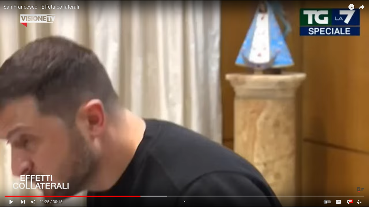 «Con tutto il rispetto per Sua Santità, noi non abbiamo bisogno di mediatori, noi abbiamo bisogno di una pace giusta». ha detto il leader ucraino a Porta a Porta.