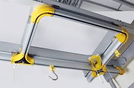 Il cavo in alto termina con 2 ganci, arrivato all'estremità di un binario il secondo gancio viene attaccato al binario vicino e poi il primo gancio viene sganciato....