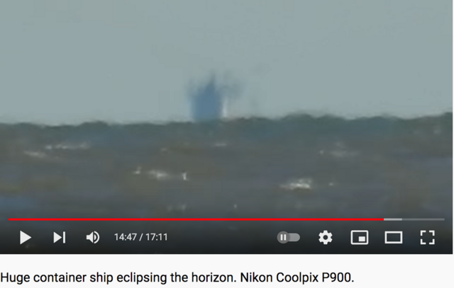 Verso la fine l'autore inquadra una porzione di terra+mare dove si vede l'inclinazione dell'orizzonte verso il mare dovuta proprio alla differente umidità tra terra e mare (youtu.be/KxLwaaU1aNk?t=858). Il fenomeno spiegherebbe le navi che "volano" al di sopra dell'orizzonte.