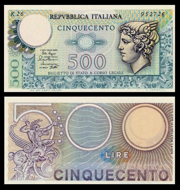 E’ proprio sotto la Presidenza del Consiglio di Aldo Moro che viene approvata la Legge 31 marzo 1966, n.171 che autorizzava il Tesoro dello Stato ad emettere biglietti di Stato a corso legale da Lire 500. Tra il 1966 ed il 1974 ne verranno emesse due serie (emissioni “Aretusa” e “Mercurio”) per complessivi 300 miliardi di Lire.