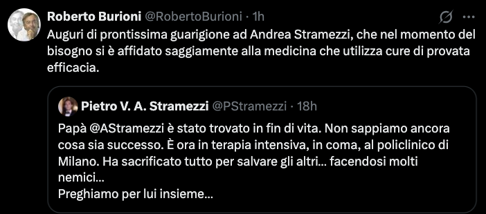 veramente, a me capita spesso di sentirmi rispondere, quando parlo di Covid, che il Covid non é mai esistito o cose del genere, per cui le cose adesso si sanno. Il problema quando muore un medico come loro, é che loro hanno trovato delle cure che funzionano e che non possono essere utilizzate perché il medico che sa come fare é morto, e i suoi collaboratori, facilmente, si sono fatti furbi.