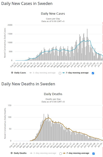 Non ne ho idea, anche perchè in teoria la Svezia avrebbe dovuto seguire la curva rosa e gli altri la curva blu, cioè la Svezia avrebbe dovuto avere un picco prima degli altri.