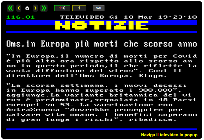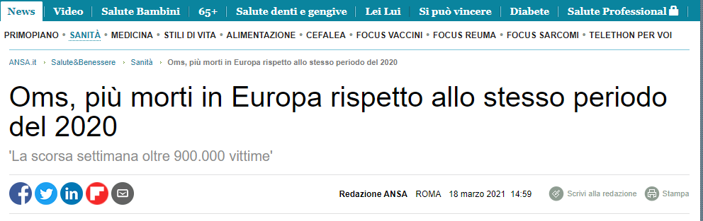esatto, anche ma pensiamo appunto che 20 tamponi non sono 20 infetti malati, anche tempo fa si era parlato appunto che una persona che ne fa molti non sono contati per 1 persona, ma per 20 o quel che è, e c'era gente che si ritrovava con esiti pur non avendo neppure fatto il tampone, li pescano anche nel database, in ogni caso il covid sarebbe gia finito con l'estate, hanno alzato qualche numero con i vaccini anti-influenzali, ora lo faranno con le varianti che produce quel vaccino di m...a, qui ci stava per intero pero', oggi sono incazzattissima con quelli che si vaccinano rovineranno il mondo con le loro varianti resistenti di ...a, oltre a essere stupidi e dormienti faranno anche molti danni sti coglioni