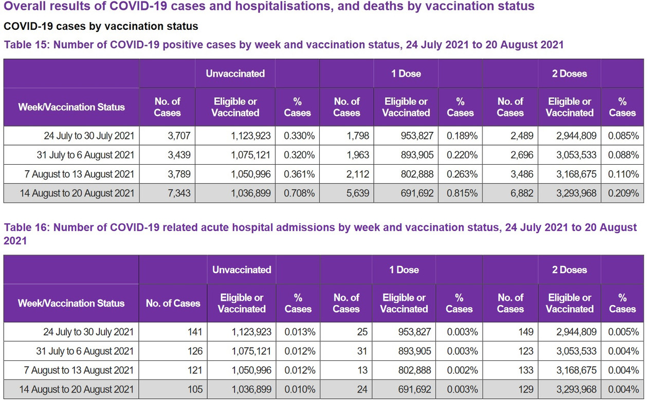 Il ministero della Salute inglese a lavoro: non è chiaro perché i vaccinati si contagino più dei non vaccinati: l'89% vaccinati contro l'11% non vaccinati