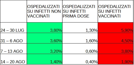 Quindi dal mio punto di vista è più corretto dato che i dati li abbiamo in questo caso, osservare quanti contagiati finiscono in ospedale in entrambe le parti.