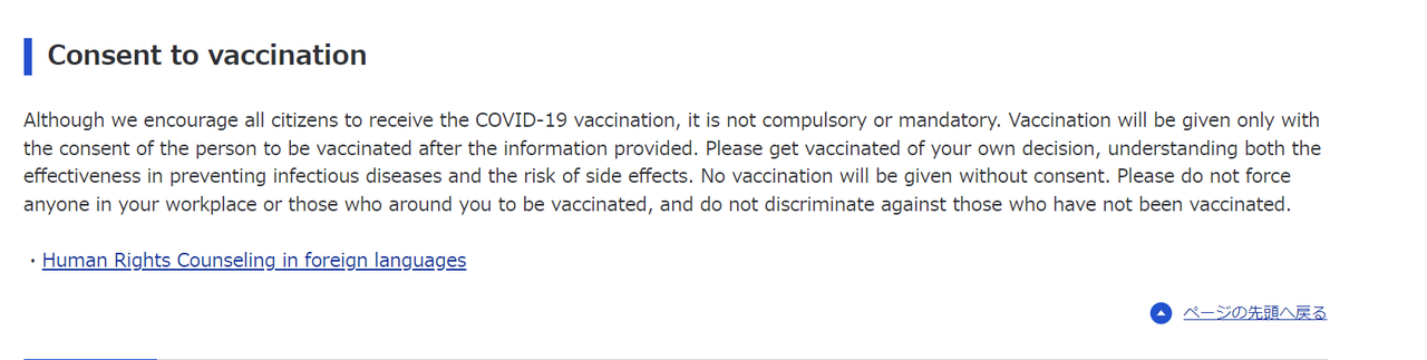 Please do not force anyone in your workplace or those who around you to be vaccinated, and do not discriminate against those who have not been vaccinated.
