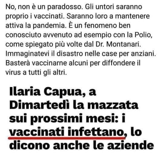 Vaccino sviluppato in fretta e furia... io credo poco che abbia il fine di combattere un virus. Mentre - voluto o meno, involontaria causa conseguente (io propendo per la prima) - tale iniezione darà risultati nefasti sulla popolazione. Si pensi alla reazione che ha avuto su Tiffany, giovane donna in piena salute, figuriamoci quella che avrà su persone già debilitate e con almeno mezza patologia... E sarà dunque ben più dannoso dei "normali" vaccini, che già hanno avuto un ruolo importante, a mio avviso, in questo periodo pandemico. Secondo me era molto interessante la correlazione tra vaccinazioni effettuate, inquinamento dell'aria e virus, soprattutto nelle zone "più colpite". Per esempio le vaccinazioni di massa per la meningite a Bergamo e Brescia nel gennaio scorso... argomento sul quale, però, non ho mai visto un particolare approfondimento. E credo invece sia un percorso molto importante verso la verità pura. O - consapevole che non esista mai una sola verità - verso la verità più rilevante ai fini della comprensione di tutta questa situazione.