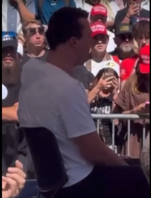 3. Trump non è stato portato via immediatamente di peso, come avviene solitamente in questi casi, dalle guardie del corpo, ma è rimasto dietro al podio in piena vista al suo "assassino" a rassicurare il pubblico.