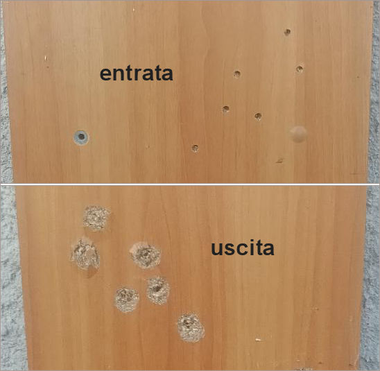 Un amico mi ha mandato un esperimento che ha fatto a casa. Sopra i fori di entrata, sotto gli stessi colpi, con i fori di uscita
