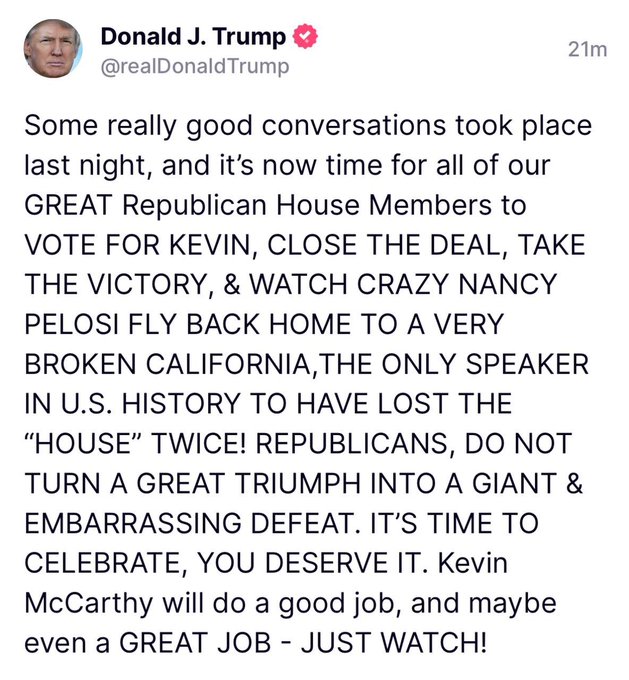 Si è giunti alla terza votazione senza risultato per la nomina del nuovo speaker. McCarthy non è ancora stato eletto, nonostante l'appoggio sia pur tiepido di Trump fino ad ora. E' il primo candidato dopo 100 anni a non essere eletto alla prima votazione dai propri compagni di partito: avrebbe avuto bisogno di 218 voti (sui 222 in mano ai repubblicani), ne ha ottenuti 202 nell'ultima votazione, con 20 repubblicani che hanno votato in blocco per Biggs e Jordan (che però è dalla parte di McCharty). Vorrei fare alcune considerazioni. La prima, è una chiara manovra politica. I repubblicani che si sono opposti alla nomina di McCarthy volevano dallo stesso certezza sul fatto che avrebbe intrapreso scelte di rottura rispetto alla Pelosi. Ad esempio, la Marjorie Taylor Green (news.yahoo.com/.../), giustamente, vuole essere riammessa alle commissioni della Camera dopo che è stata bannata per "aver diffuso teorie cospirative" (questo tra l'altro non è ben noto mi pare, e ridimensiona molto le sue dichiarazioni di voler controllare ogni centesimo dato all'Ucraina, dal momento che è fuori da ogni possibilità di azione, per ora). Altri hanno chiesto di calendarizzare con certezza una richiesta di impeachment per l'AG Merrick Garland, altri ancora una revisione della commissione sul 6 gennaio. Insomma, la maggioranza non elevata dei repubblicani alla Camera consente il fatto che bastano 5 voti contro per bloccare la nomina di McCarthy, quindi il gioco politico prevede chiaramente che ci siano delle certezze che debbono essere date se vuole diventare speaker. Funziona così. La questione però non è da sottovalutare, lo stesso Trump aveva spiegato che, dopo il voto al GOP che aveva visto stravincere McCarthy, un eventuale stallo potrebbe avere conseguenze nefaste: se si dovesse arrivare al punto, ad esempio, di stabilire nella votazione che conta la maggioranza solo dei presenti, basterebbe nulla per consentire anche ai dem di avere influenza nella decisione. In secondo luogo, si deve considerare che la mancata nomina dello speaker blocca di fatto l'insediamento alla Camera dei nuovi eletti, non potendo prestare giuramento. In terzo luogo, persistere nell'ostruzionismo, senza avere in mano i voti che consentono di eleggere chi si preferisce (ovvero Biggs e Jordan, parrebbe di capire), dubito che porterà gli altri repubblicani a scegliere qualcuno di diverso dal nome che è uscito dalle votazioni del GOP, che, piaccia o meno, è proprio McCarthy. Vedo molti esultare, personalmente non mi sembra una "strategia" che alla lunga possa essere produttiva, tutt'altro. In previsione delle presidenziali del 2024, trasmette al paese un senso di divisione all'interno del GOP, dando un'immagine di maggiore radicalizzazione dei "ribelli" all'elettorato, e non mi pare che la base apprezzi molto. E soprattutto, incrementa dubbi sulla nuova legislazione in mano ai repubblicani, se questo è l'inizio, non mi stupirei se gli americani si chiedessero se riusciranno a fare qualcosa di comune interesse. C'è da ultimo un giallo rispetto alla posizione di Trump dopo le tre votazioni. Posto che McCarthy (apnews.com/.../...) ha ufficialmente dichiarato di non volersi ritirare dalla corsa come speaker, lui stesso dice di aver ricevuto una telefonata di supporto da Trump, che sarebbe avvenuta dopo le dichiarazioni attendiste (nbcnews.com/.../...) del Presidente a seguito delle tre votazioni. Alla fine, vien da dire che tutto il mondo è paese, e che la politica si manifesta sempre nello stesso modo, nonostante le migliori intenzioni.