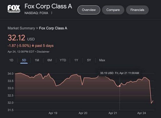 Come scusa ufficiale è stata usata la questione Dominion, la società che costruisce le macchinette per il voto elettronico, che aveva denunciato la Fox per diffamazione (diversi personaggi nelle trasmissioni della Fox avevano sostenuto che le macchinette Dominion fossero “truccate”, per favorire Biden nell’elezione del 2020). Fox ha dovuto patteggiare con Dominion una somma di oltre 700 milioni di dollari per evitare di finire sotto processo.