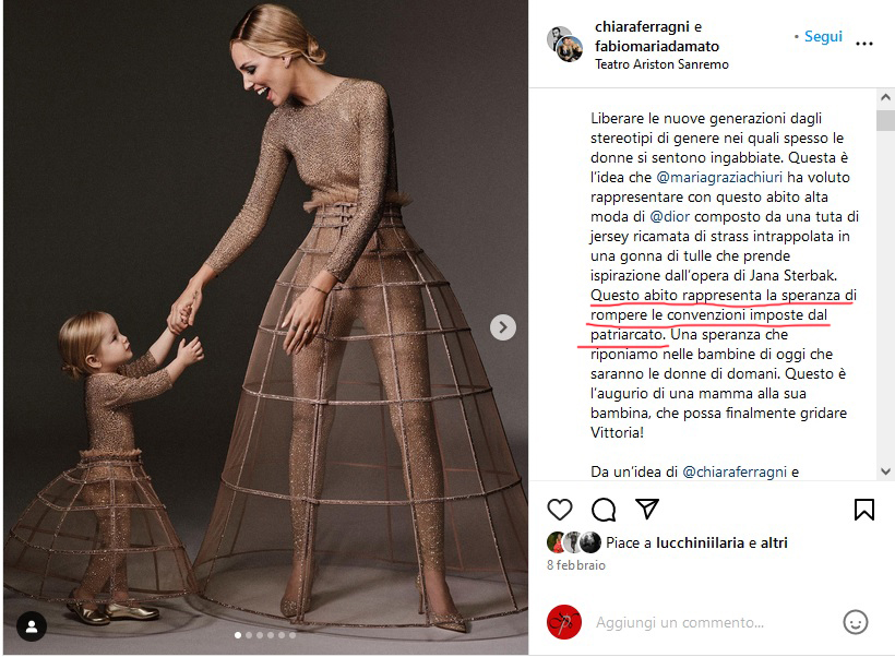 Se ne potrebbe scrivere un libro di approfondimento così come sono stati scritti nei decenni libri sulla critica della nostra società, e questo non ovviamente perché stiamo parlando della Ferragni ma per quello che essa è venuta a rappresentare.